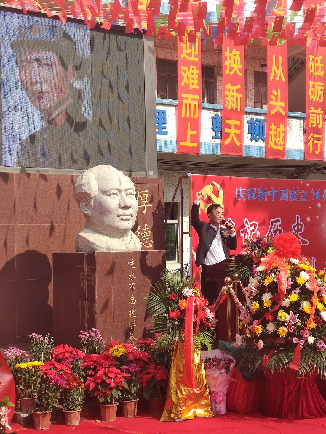 綠志島董事長朱祖生先生帶領我們喊——中國共產黨萬歲!人民萬歲!